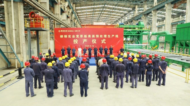 柳鋼實業寬厚板表面預處理生產線投產儀式現場。