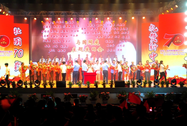 晚會舉辦與國同慶主題生日會。公司領導為二十名員工送上鮮花,祝他們生日快樂。