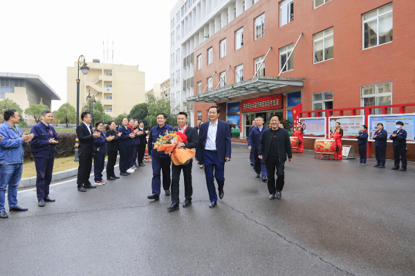 在歡送儀式上,徐向陽介紹了宛雙的成長歷程。宛雙出生于1986年,2010年10月份進入方大九鋼后,在企業培養和個人努力下,各項技能不斷提升。特別是方大集團重組方大九鋼以來,“尊重勞動、尊重知識、尊重人才、尊重創造”的深厚氛圍給全體員工提供了更廣闊的舞臺。2013年宛雙參加公司職業技能大賽奪得第一名,同年10月份參加江西省職工職業技能大賽獲得冠軍……方大九鋼專門為他創立了“宛雙勞模工作室”,在這片廣闊的天地里,他潛心鉆研,探討小改小革、研究技術改造,幾年來實施了鋸床水冷系統改善、石灰粉蝶閥取樣器改造等10余項小改小革,有力地促進企業降本增效,榮獲“江西省勞動模范”等多項榮譽。宛雙從一名學徒成長為全國勞模,身上充分展現出了新時代弘揚的奮斗精神、工匠精神。顏建新代表公司對宛雙榮獲全國勞模表示祝賀,感謝湖口縣委縣政府對方大九鋼的關心關愛與肯定。他表示,宛雙榮獲全國勞動模范,既是個人的榮譽,也是方大九鋼的驕傲,更是黨和政府對企業的高度肯定,公司將以此為新的起點,抓好各項工作,為地方經濟社會發展作出新的貢獻。