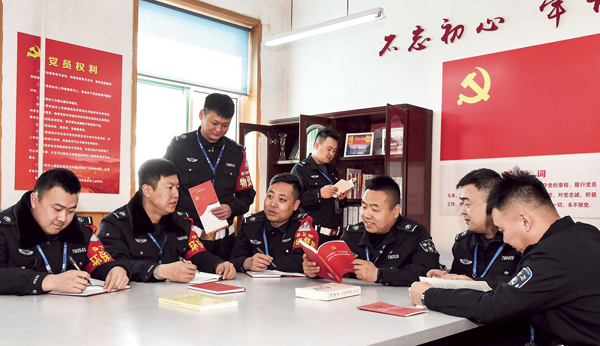 3月22日,中國寶武太鋼集團保衛(wèi)部護衛(wèi)支隊隊員在黨史學(xué)習(xí)教育中交流心得(如圖)。太鋼集團保衛(wèi)部護衛(wèi)支隊在黨史學(xué)習(xí)教育過程中,創(chuàng)新方法,注重實效,通過采取“三會一課”、主題黨日、舉辦讀書會等形式夯實學(xué)習(xí)基礎(chǔ),營造學(xué)習(xí)氛圍,扎實推進黨史學(xué)習(xí)教育向縱深開展。 (特約通訊員 王旭宏 攝 通訊員 張偉 文)