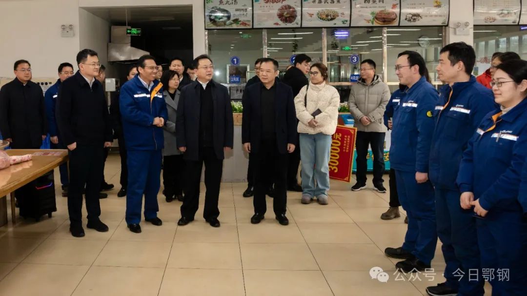 孫兵一行來到匠心園員工餐廳,向鄂鋼領導干部職工致以節日的問候。孫兵詳細了解公司安全生產、設備運行、風險管控、日常監管及安全隱患排查整治、節假日值班值守安排等情況。他強調,安全不放假,要認真貫徹落實中央、省市部署要求,提高政治站位、扛起政治責任,強化紅線意識、樹牢底線思維,始終保持“時時放心不下”的責任感,時刻繃緊安全生產這根弦,切實抓好安全生產工作,為春節假期營造安全穩定和諧的社會環境。