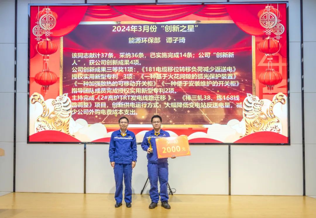 會上,該公司黨委副書記(主持工作)、副董事長王虎祥為直屬領導班子季度績效“賽馬”最佳團隊獎、一季度崗位創新成果獎和3月份崗位“創新之星”頒獎。