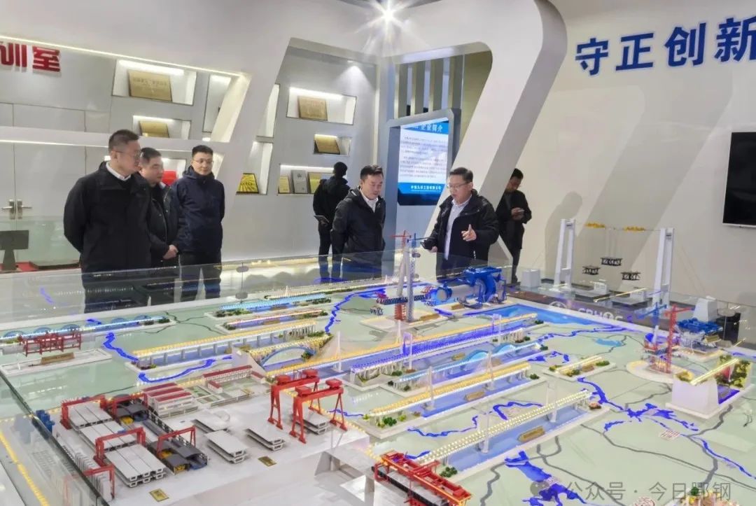 11月27日,黃大軍帶隊赴江西九江,走訪中鐵九橋工程有限公司。參觀了王中美勞模創新工作室、生產現場和自有碼頭等,并與中鐵九橋副總經理李正兵進行座談交流。