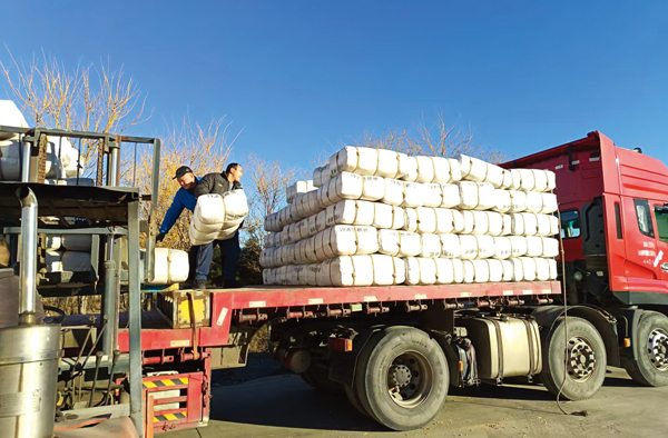 圖為新興際華森普利公司連夜組織職工將10000件皮大衣裝車。
