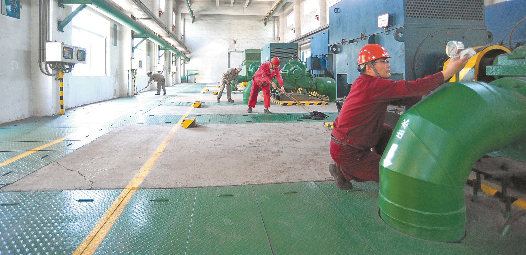 今年初以來(lái),沙鋼電爐煉鋼廠一車間嚴(yán)格按照“一月一區(qū)一樣板”要求,全力推進(jìn)水處理泵房的6S精益管理工作,通過(guò)現(xiàn)場(chǎng)制作TPM看板,明確設(shè)備點(diǎn)檢、清衛(wèi)、潤(rùn)滑基準(zhǔn),組織好每周一次排查與整改,為職工營(yíng)造出一個(gè)干凈、整潔、舒適的工作環(huán)境。圖為該車間職工正在清理水泵房環(huán)境衛(wèi)生。 (孫靜波 李欣怡 攝)