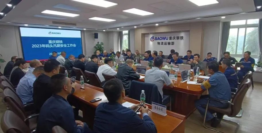重慶鋼鐵全面部署防汛度汛各項工作安排,聯合長壽區海事處,長壽區港航海事事務中心,中冶寶鋼及18家船務公司召開2023年度碼頭汛期安全工作會,切實強化水運一線防汛工作檢查督查,全力以赴筑牢防汛“安全堤”。