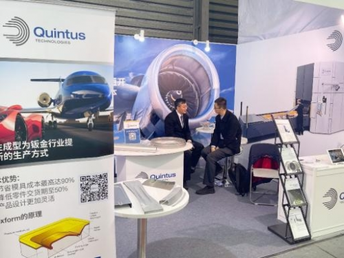 在Quintus的展臺上,參觀者可以近距離探索各種類型的Quintus Flexform?液壓成型設備,該設備可以為用戶削減高達 90% 的模具成本和縮短 50% 以上的生產周期,同時還能提供產品設計上的靈活性。許多參觀者還親眼目睹了使用Quintus Flexform?技術成型的零件,并對其的精度和復雜性表達了高度的贊賞。