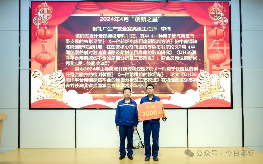 該公司總裁、黨委副書記陸隆文為4月份崗位“創(chuàng)新之星”頒獎(jiǎng)。