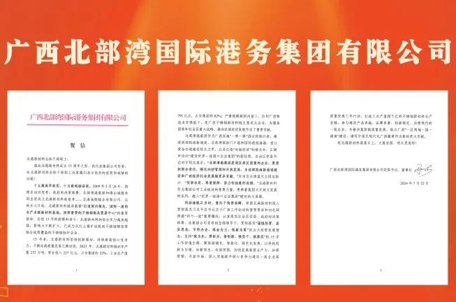 希望北港新材料乘著集團大開放大發展的東風,融入“世界一流港口企業集團”建設的大浪潮,秉持集團公司“五大經營發展理念”和“15字工作價值主題”,聚焦高端化、智能化、綠色化發展,向新而行、向質圖強,加快發展新質生產力,深入實施提升核心競爭力建設一流企業高質量發展三年行動,打造工業產值超千億元的不銹鋼新材料全產業鏈,為推動集團高質量發展、助力廣西“一區兩地一園一通道”建設,譜寫中國式現代化廣西篇章作出新的更大貢獻。