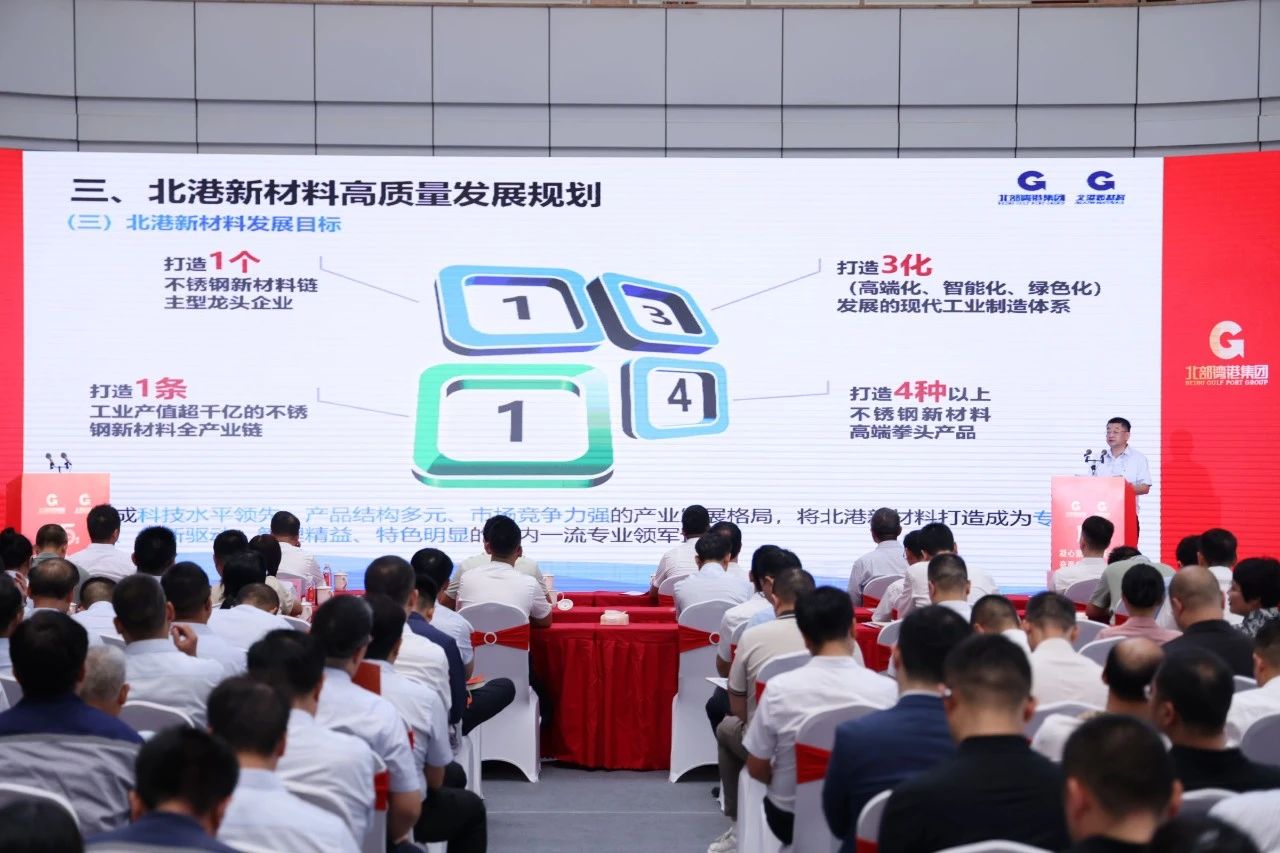 大會希望北港新材料持續提升核心競爭力,用新質生產力推動不銹鋼產業智能化、綠色化、集群化發展,在新的形勢和市場環境下,堅持開拓創新,奮力走好高質量發展三年行動之路,為打造千億不銹鋼產業園目標、服務北部灣港集團改革發展交出一份滿意的答卷。