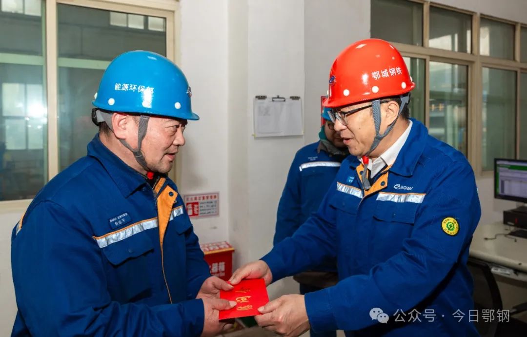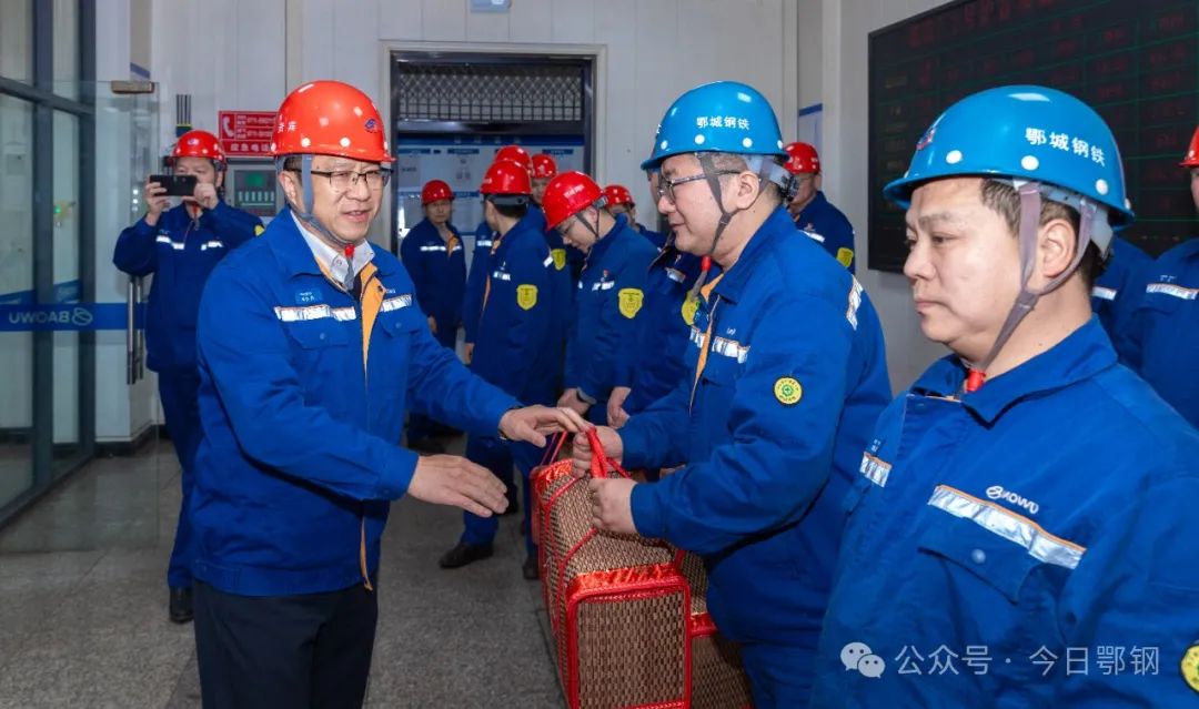 1月14日下午,中南鋼鐵黨委副書記李懷東來鄂鋼開展節前安全環保大檢查,走訪慰問一線優秀班組、勞模代表和困難職工,為他們送去新春的美好祝福。鄂城鋼鐵公司領導黃大軍陪同檢查慰問。