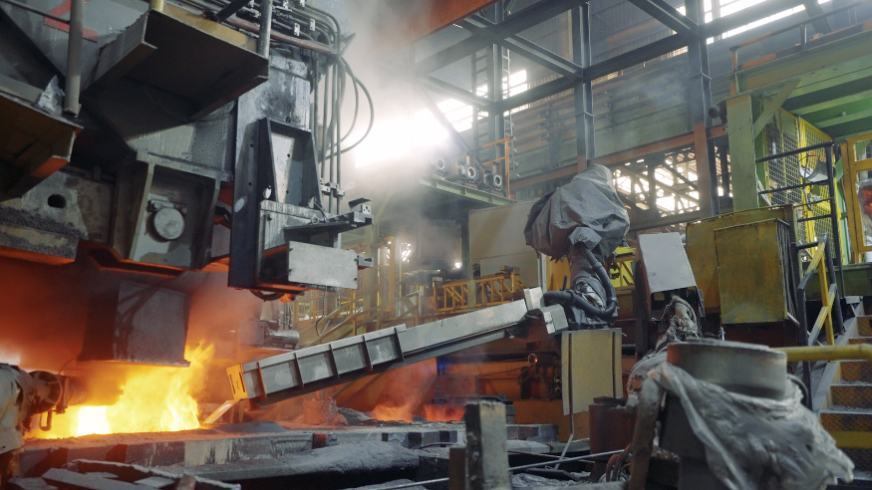 圖為鐳目科技與原韶鋼聯(lián)合攻關(guān)建成的無人澆鋼平臺運行現(xiàn)場