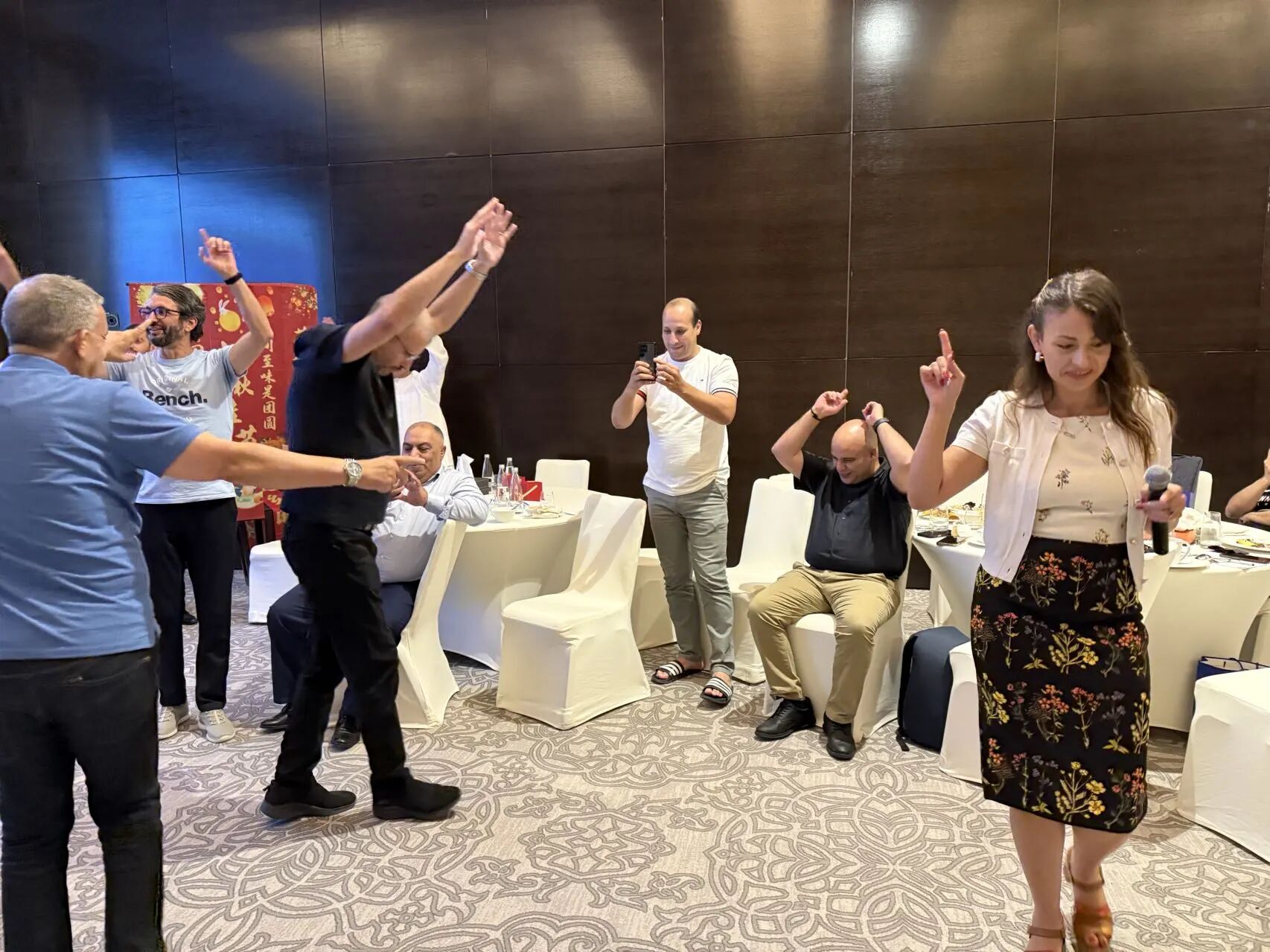 為表達對合作伙伴的重視,鐳目團隊在展會前夕,10月6日晚,特別舉辦了以“中秋團圓夜”為主題的文化沉浸式體驗活動。圓月之下,來自卡塔爾鋼鐵(Qatar Steel)、阿爾及利亞卡塔爾鋼鐵(Algerian Qatari Steel)、馬斯喀特鋼廠(Muscat Steel)等多家鋼廠的高層領導齊聚一堂,大家一起猜燈謎、吃月餅、跳舞,與鐳目團隊共度佳節(jié)。