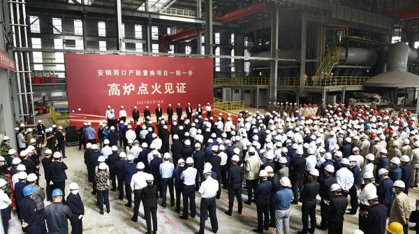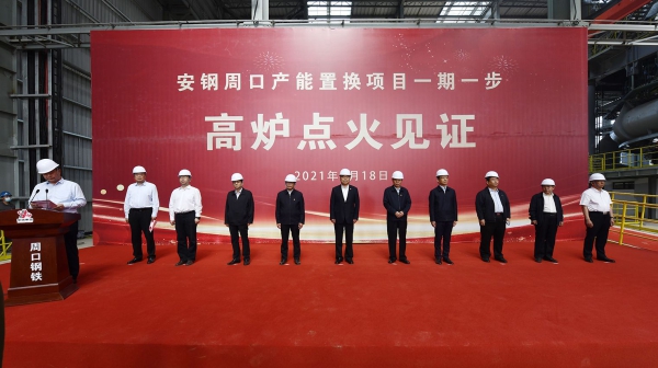 5月18日,在周口沈丘縣鋼鐵產(chǎn)業(yè)園區(qū)內(nèi),目光聚焦在安鋼周口產(chǎn)能置換項(xiàng)目一期一步高爐點(diǎn)火現(xiàn)場。