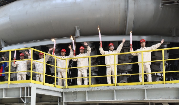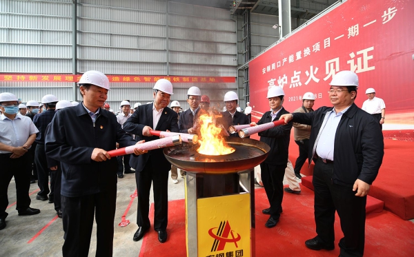 上午9時(shí)28分,省工信廳廳長李濤、省自然資源廳廳長張興遼、省國資委主任李濤,周口市委書記劉繼標(biāo)、市長丁福浩,安鋼集團(tuán)公司黨委書記、董事長李利劍共同從安鋼煉鐵廠3座高爐采集的火種盆中點(diǎn)燃火把,交由6位高爐爐長跑上爐臺(tái)點(diǎn)火,熊熊的烈火也點(diǎn)燃了安鋼薪火相傳的鋼鐵事業(yè)。