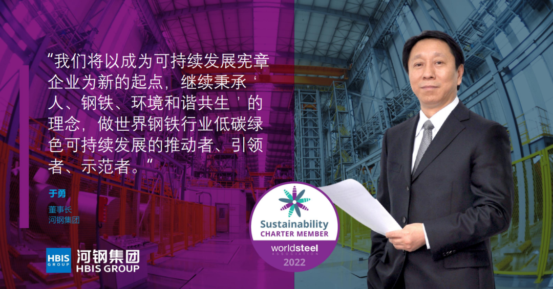河鋼集團黨委書記、董事長于勇在簽署中表示:“我們將以成為可持續發展憲章企業為新的起點,秉承‘人、鋼鐵、環境和諧共生’的理念,做世界鋼鐵行業低碳綠色可持續發展的推動者、引領者、示范者。”
