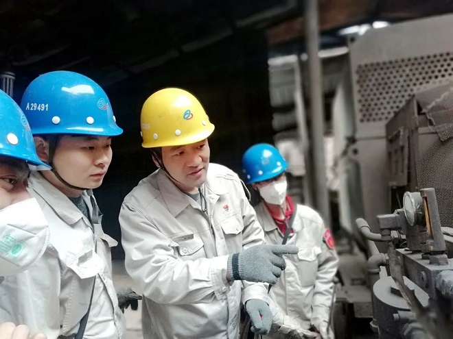 韶鋼黨員在現場了解、解決生產難題