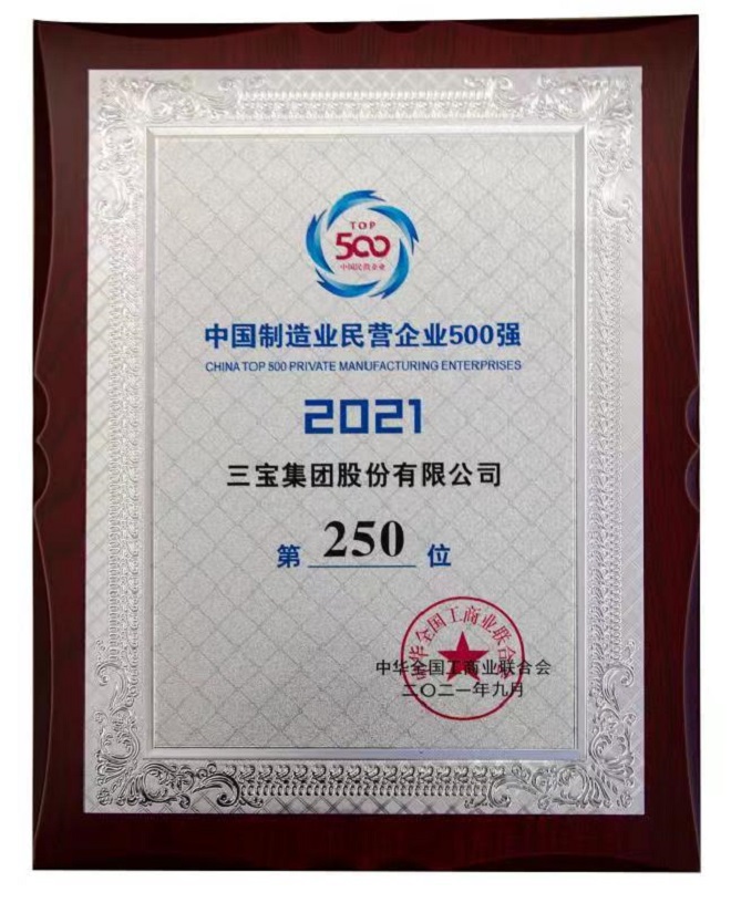 正是因為二十多年來始終堅持高標準的品質要求,三寶集團頻獲殊榮,2021年,公司蟬聯“中國制造業企業500強”“中國民營企業500強”“福建省百強企業”,先后獲得“國家高新技術企業”“國家認可實驗室”“全國綠色工廠”“中國馳名商標”“全國守合同、重信用企業”“2020年度-2021年度福建省重點工程推薦品牌”“2020-2021年度全國帶鋼鋼廠優質品牌”等榮譽,不斷擴大品牌影響力。