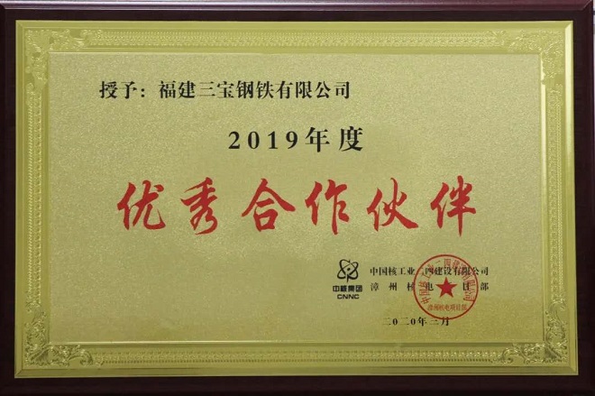 三寶集團“重合同、守信用”并非虛言,2021年期間鋼價創歷史新高,但三寶集團仍按約定價格發放漳州核電工程2020年所定的貨物。三年來,三寶集團總計為華龍一號漳州核電工程提供18.9萬噸鋼筋。漳州核電工程所用鋼筋有95%都源自于三寶集團。同時,三寶集團連續三年被對方授予“優秀合作伙伴”榮譽稱號。