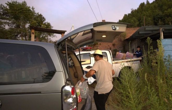 現場搬運物資,發放鐵鍬等工具