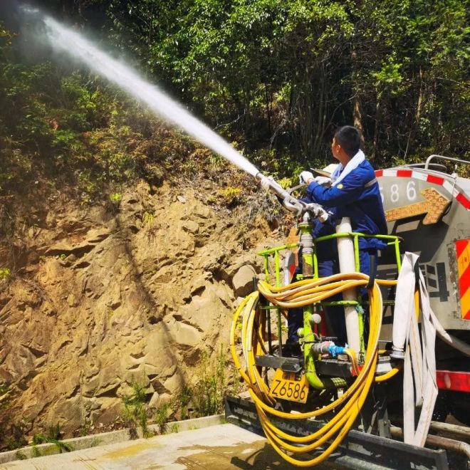 到達現場后, “戰士”們按照現場指揮部的分工安排,立即投入到滅火救援行動中,疏散隊員以最快的速度組織疏散火情區域村民;物資轉運隊員默契的形成物資傳送帶,聯合專業消防隊員和武警將救援物資搬運到指定地點。救火突擊隊員下車后立刻投入到滅火行動中,與時間賽跑、與火情較量,他們“戰斗力”滿格。