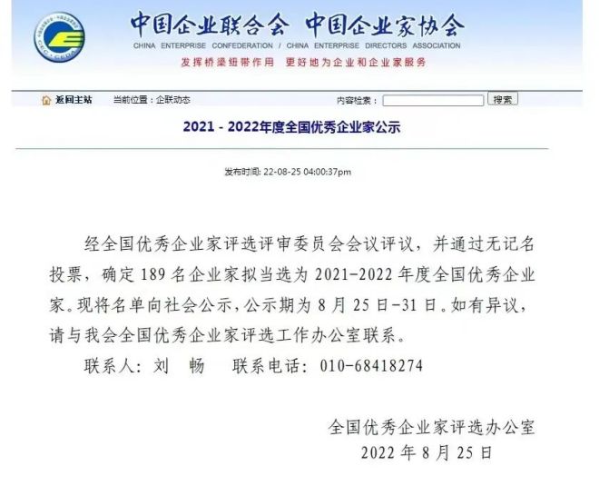 近日,中國(guó)企業(yè)家聯(lián)合會(huì)、中國(guó)企業(yè)家協(xié)會(huì)網(wǎng)站發(fā)布《2021—2022年度全國(guó)優(yōu)秀企業(yè)家公示》。經(jīng)全國(guó)優(yōu)秀企業(yè)家評(píng)選評(píng)審委員會(huì)會(huì)議評(píng)議,并通過(guò)無(wú)記名投票,全國(guó)優(yōu)秀企業(yè)家評(píng)選辦公室確定189名企業(yè)家擬當(dāng)選為2021-2022年度全國(guó)優(yōu)秀企業(yè)家。其中,河北普陽(yáng)鋼鐵有限公司黨委書記、董事長(zhǎng)郭恩元上榜。