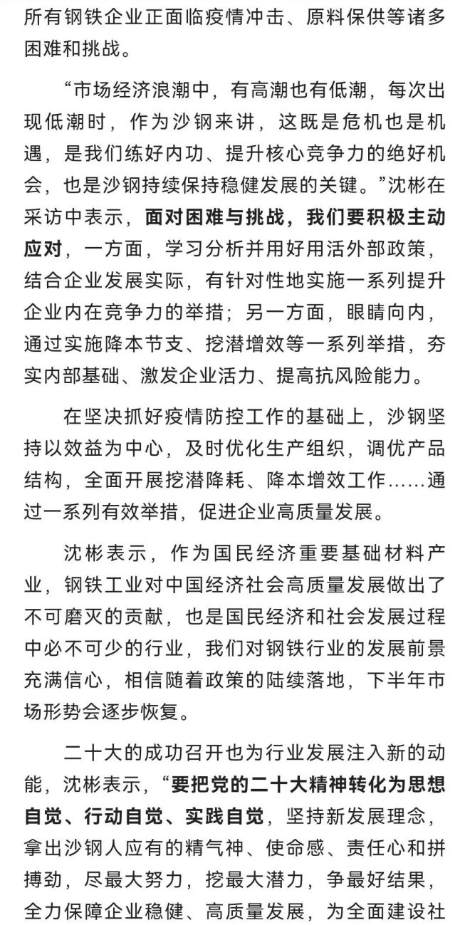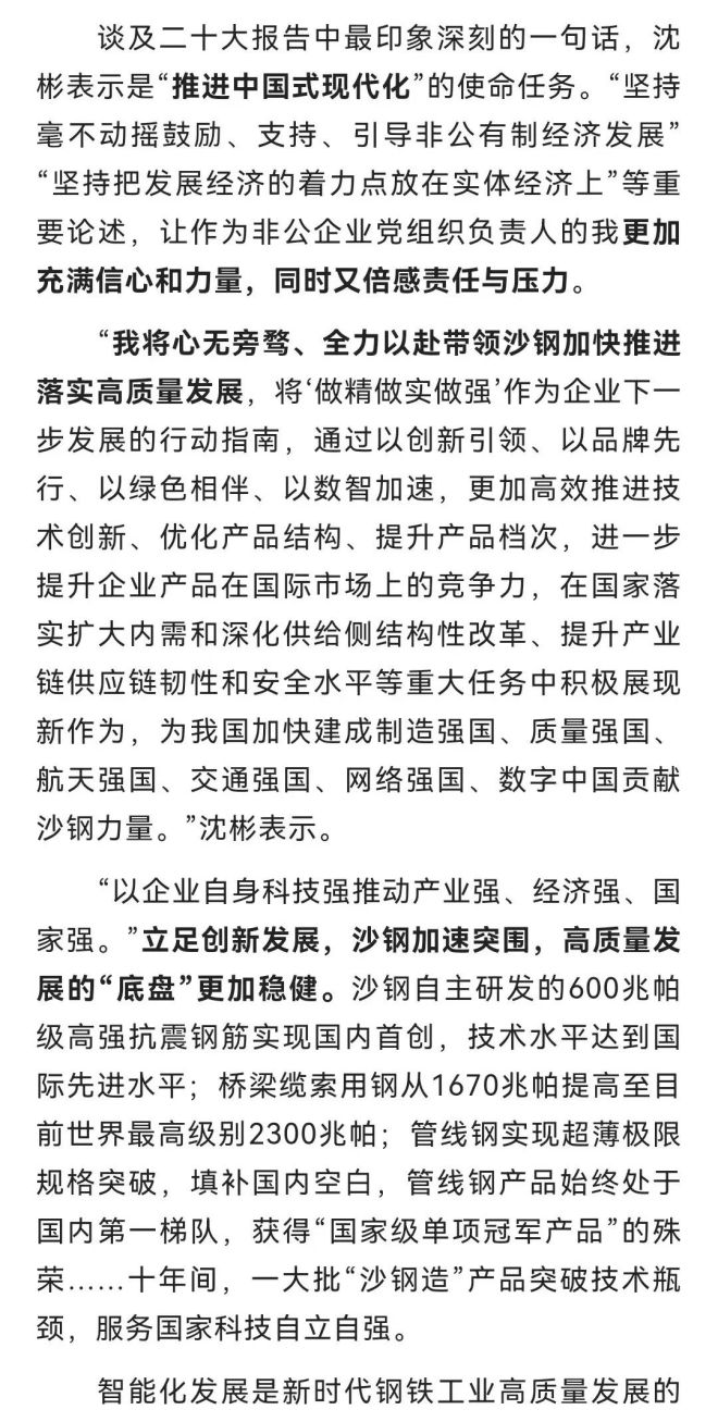 沈彬:心無旁騖、全力以赴,做精做實做強沙鋼