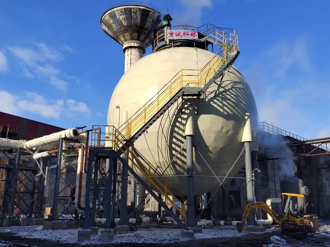 11月26日,由中冶京誠(chéng)承建的吉林建龍RH爐蒸汽系統(tǒng)改造工程650m3球形蒸汽蓄熱器順利投運(yùn),當(dāng)日15:32充壓至2.0MPa后,20:15正式交付生產(chǎn)使用,投運(yùn)后各系統(tǒng)、設(shè)備運(yùn)行參數(shù)正常,標(biāo)志著中冶京誠(chéng)科技成果“一種高汽空間汽水分離技術(shù)開(kāi)發(fā)與應(yīng)用”獲得成功應(yīng)用,完成了優(yōu)質(zhì)球形蒸汽蓄熱器產(chǎn)品的研發(fā)升級(jí),再次取得了該領(lǐng)域的技術(shù)突破。