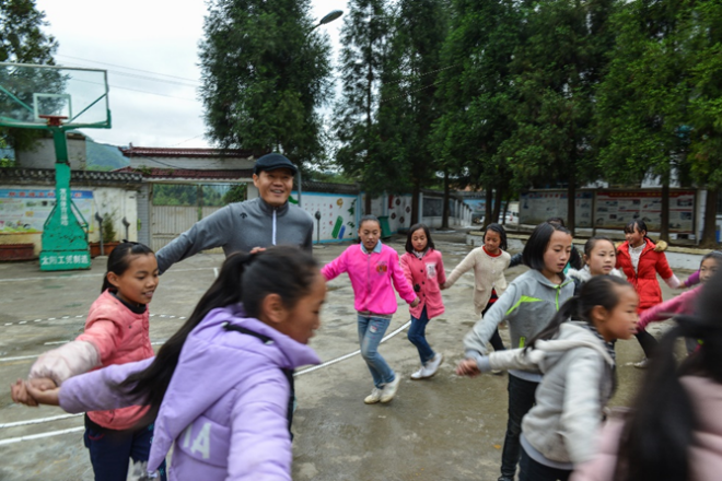 丁立國董事長與鄉(xiāng)村學(xué)生們在一起
