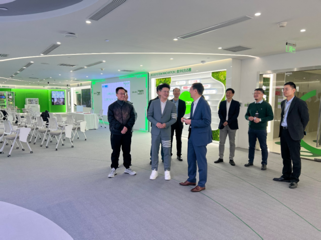 海瀾智云一行上午到達(dá)上海長風(fēng)大廈,并參觀施耐德電氣數(shù)字化展廳。參觀后雙方就公司具體情況各自進(jìn)行介紹,并對企業(yè)“智能化改造、數(shù)字化轉(zhuǎn)型、綠色化提升”方面進(jìn)行充分的信息交流,助力企業(yè)提高數(shù)字化經(jīng)濟(jì)中的經(jīng)濟(jì)韌性。