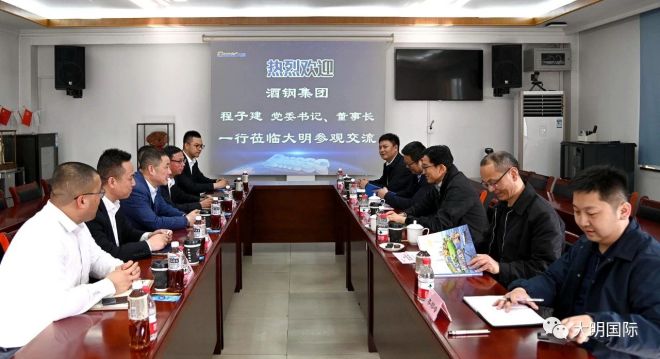 4月29日,酒鋼集團黨委書記、董事長程子建,酒鋼集團市場營銷部總經理周彪,集團辦文秘室副經理李祁峰,華東酒鋼銷售公司總經理王洪園一行到訪大明。