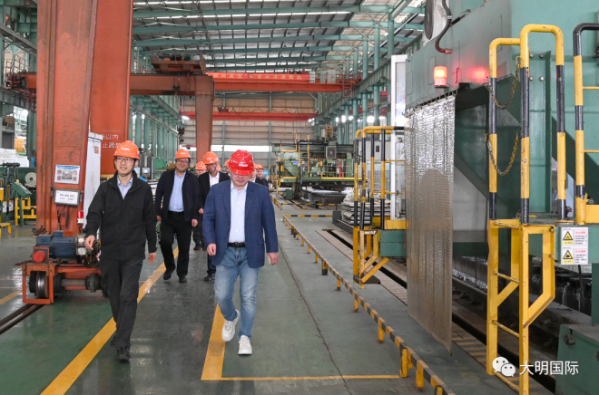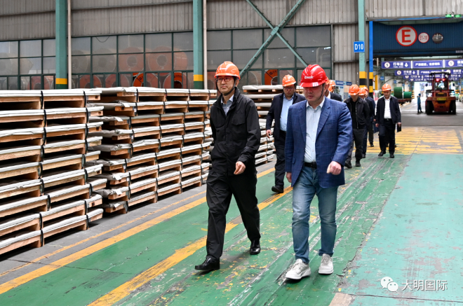 大明國際董事會主席周克明、副總裁張鋒,靖江加工中心總經理蔣隨強、集團不銹鋼事業(yè)部副總經理朱海斌、集團供應部部長助理朱文嘉、集團供應部王海晨等熱情接待。