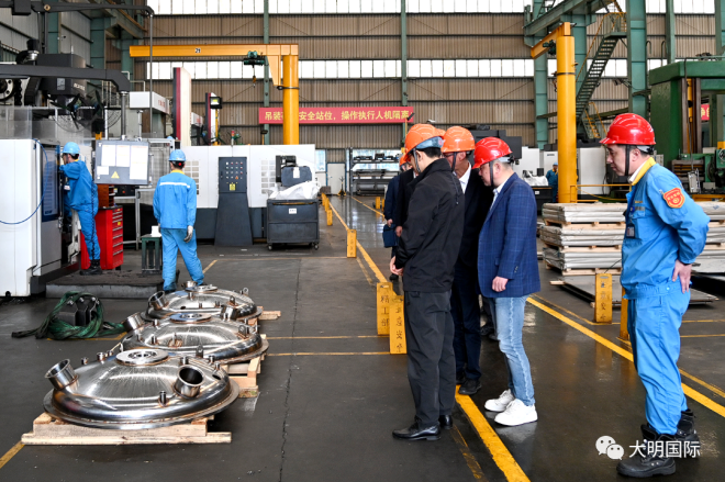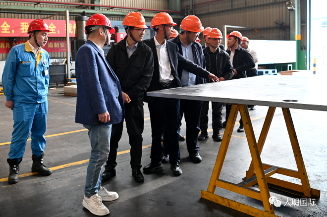 程子建董事長一行首先參觀了江蘇大明加工中心,了解了大明在材料加工領域的能力和“一站式”服務能力,并對大明的先進設備集群表示贊賞。