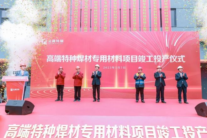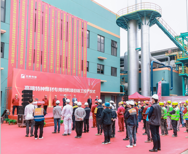 5月7日,龍騰特鋼高端特種焊材專用材料項目(雙高線分廠)竣工投產儀式隆重舉行,標志著龍騰特鋼產業鏈又一次完善升級,產品深加工能力邁上新臺階。