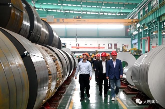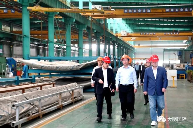 大明國際董事會(huì)主席周克明、常務(wù)副總裁錢立、副總裁張鋒、靖江加工中心總經(jīng)理蔣隨強(qiáng)、集團(tuán)不銹鋼事業(yè)部副總經(jīng)理朱海斌、靖江加工中心副總經(jīng)理袁康、集團(tuán)供應(yīng)部部長助理朱文嘉等熱情接待,并陪同參觀交流。