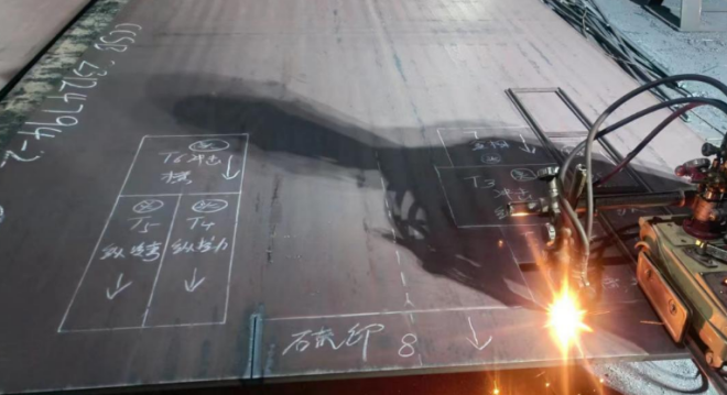 船板CCSB、AH36從冶煉到軋制一氣呵成,質檢人員第一時間檢驗鋼板并標注試樣取樣位置,快速完成船板取樣、加工過程,將試樣羅列在試樣架上,李建老師對試樣進行測量查看后,在實驗室觀測所有試驗過程,對金鼎鋼鐵集團有限公司船板產品的生產能力、資質及人員專業程度表示肯定和認可。