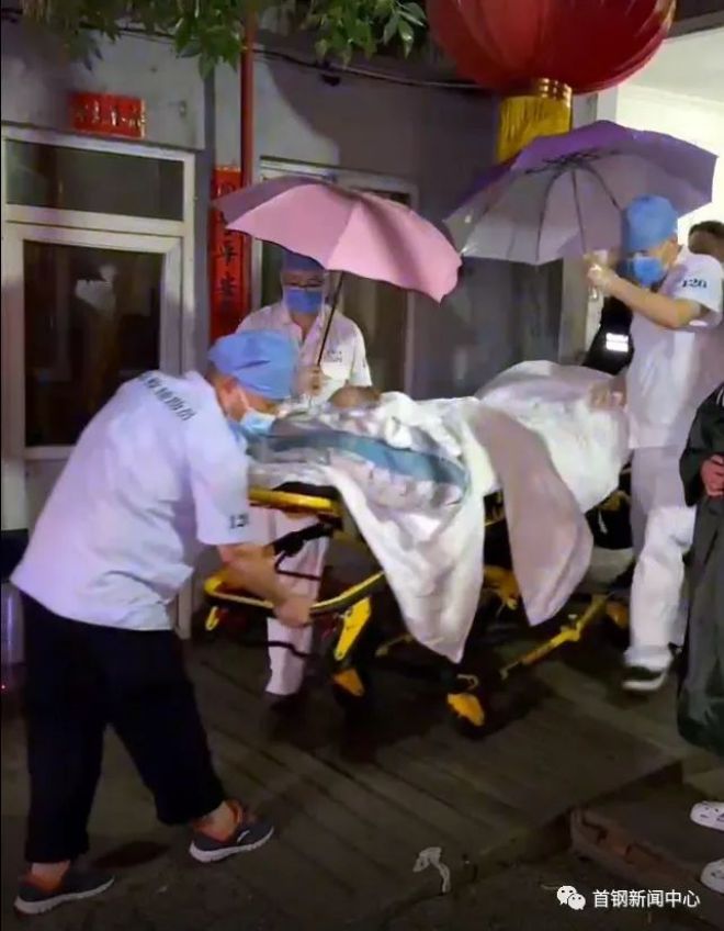 從下午的大雨滂沱,到次日凌晨的濕熱纏身。首鋼醫院兩輛急救車馬不停蹄,連跑了12趟,順利將12名病患、居民,轉運到具有相應資質的醫療機構。