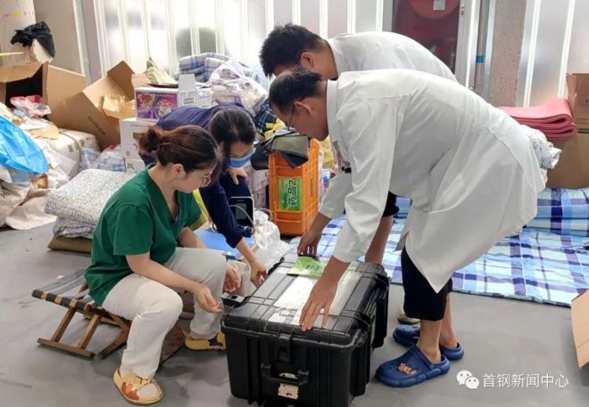 “昨天下午接到任務后,我們迅速統籌醫療資源,根據期間可能高發的心腦血管疾病、暑期腸道感染、神經內科疾病等情況,組建了以內科大夫為主的‘3醫3護’醫療服務隊。同時攜帶搶救用的體外除顫設備、心電監護儀、心電圖機,以及一些基礎病、常用慢性病藥,趕到了安置點。今天我們再根據現場情況,進行查漏補缺,全力以赴做好安置人員的醫療保障工作”,首鋼醫院醫務處處長陳新說。