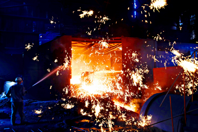 煉鐵廠老員工林紅軍深情的注視這最后一爐鐵。