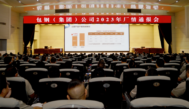 包鋼(集團)公司黨委副書記、總經理李曉圍繞2023年以來公司生產經營指標完成情況、主要工作成效、內外部形勢分析研判、后幾個月工作思路等4個方面進行廠情通報;公司黨委常委、工會主席胡靜主持會議。