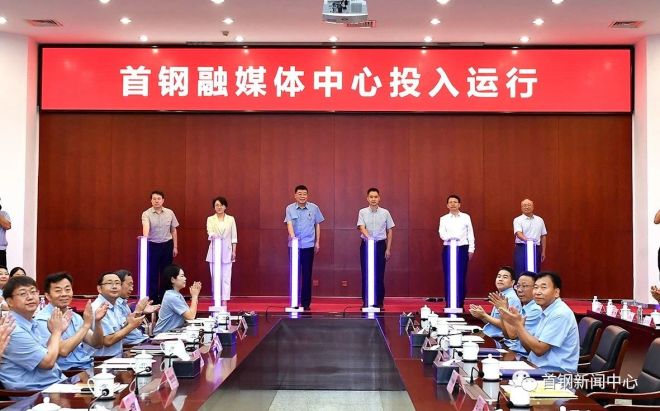 首鋼集團(tuán)黨委書記、董事長(zhǎng)趙民革為從事首鋼新聞工作30年、作出貢獻(xiàn)的新聞工作者代表頒發(fā)榮譽(yù)證書,并和中宣部傳媒監(jiān)管局行政協(xié)調(diào)處處長(zhǎng)丁智勇,中國(guó)記協(xié)國(guó)內(nèi)工作部副主任王佳,北京市國(guó)資委一級(jí)巡視員翟賢軍,北京市委宣傳部傳媒監(jiān)管處副處長(zhǎng)、一級(jí)調(diào)研員張俊杰,中國(guó)企業(yè)報(bào)協(xié)會(huì)會(huì)長(zhǎng)俞太銀共同啟動(dòng)首鋼融媒體中心投運(yùn)。首鋼集團(tuán)黨委副書記邱銀富主持會(huì)議。石景山區(qū)融媒體中心副主任譚一兵,首鋼集團(tuán)總部部門領(lǐng)導(dǎo),各單位分管宣傳工作的領(lǐng)導(dǎo)、宣傳部長(zhǎng),集團(tuán)黨委宣傳部和新聞中心全體人員,首鋼日?qǐng)?bào)社退休老同志代表參加會(huì)議。