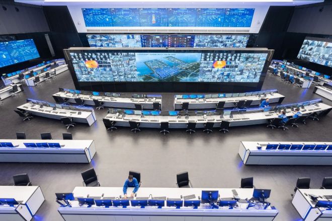 這是行業內基礎支撐條件最優的鐵前集控中心,集成了100多套PLC/DCS系統、匯集1000多幅監控畫面,圍繞生產、環保、物流、安全、能源等領域,建設了一系列智能設備,融合人工智能等技術,全面實現智能遠程操作和統一管理、統一調度、實時優化。