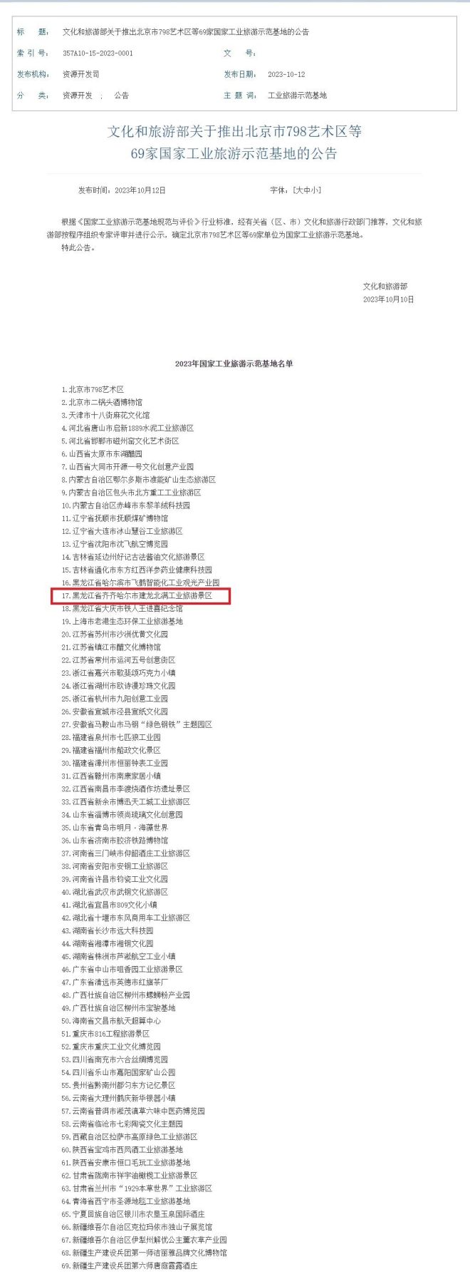 近日,中華人民共和國文化和旅游部正式公告了2023年69個國家工業(yè)旅游示范基地名單,建龍北滿特鋼工業(yè)旅游景區(qū)榜上有名,這也是建龍集團首家上榜國家工業(yè)旅游示范基地的子公司。