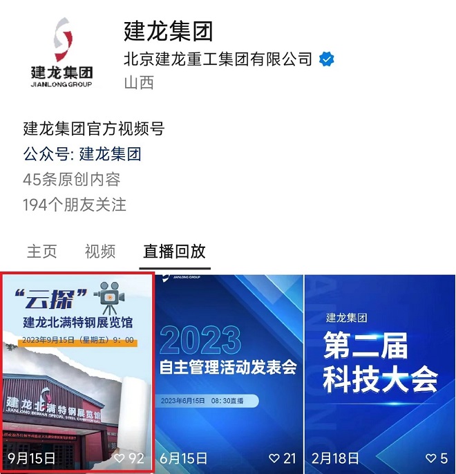 什么?您錯過了之前的展館云直播?不要緊,您可以關(guān)注建龍集團的視頻號在直播回訪中找到呦!