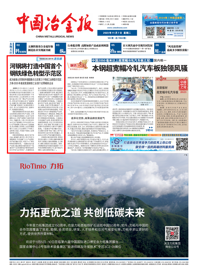 河鋼將打造中國(guó)首個(gè)鋼鐵綠色轉(zhuǎn)型示范區(qū)