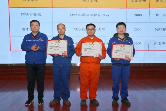 會上,各單位通報了集團公司10月份技術創新、修舊利廢和產量、成本、績效、崗位創新、技能工作室第三季度優秀成果和10月份規程標準編制及設備管理信息化獎懲情況,并對先進單位及個人進行了隆重的表彰。隨后,獲獎單位代表通才煉鋼廠吳陽迎、呂志偉、通才煉鐵廠高星、鑄鐵事業部付偉分別進行了技術創新、修舊利廢、產線降本和規程標準編制先進的體會分享。