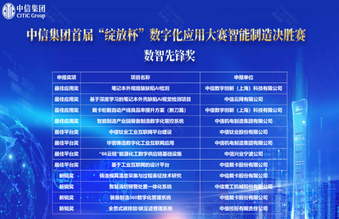 11月17日,以“數(shù)字賦能·智啟未來(lái)”為主題的中信集團(tuán)首屆“綻放杯”數(shù)字化應(yīng)用大賽智能制造決勝賽在中信泰富特鋼火熱舉行。
