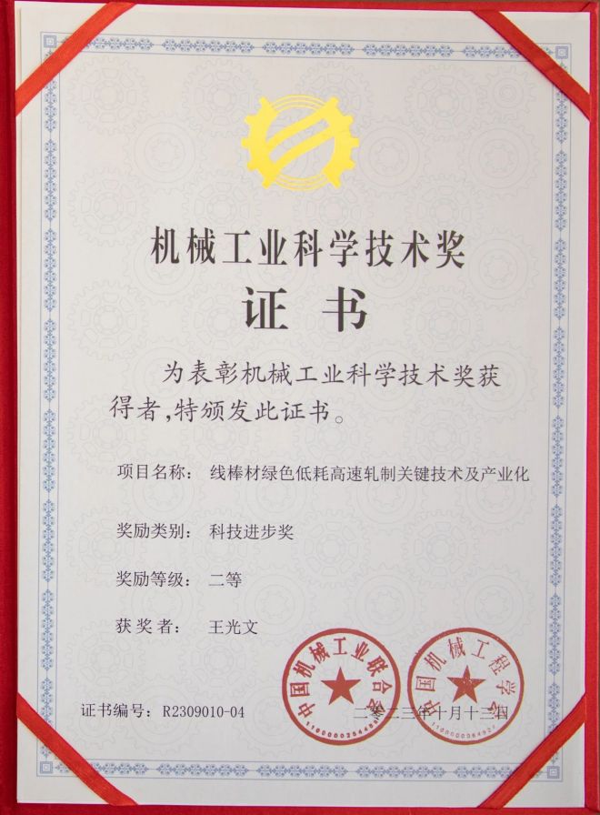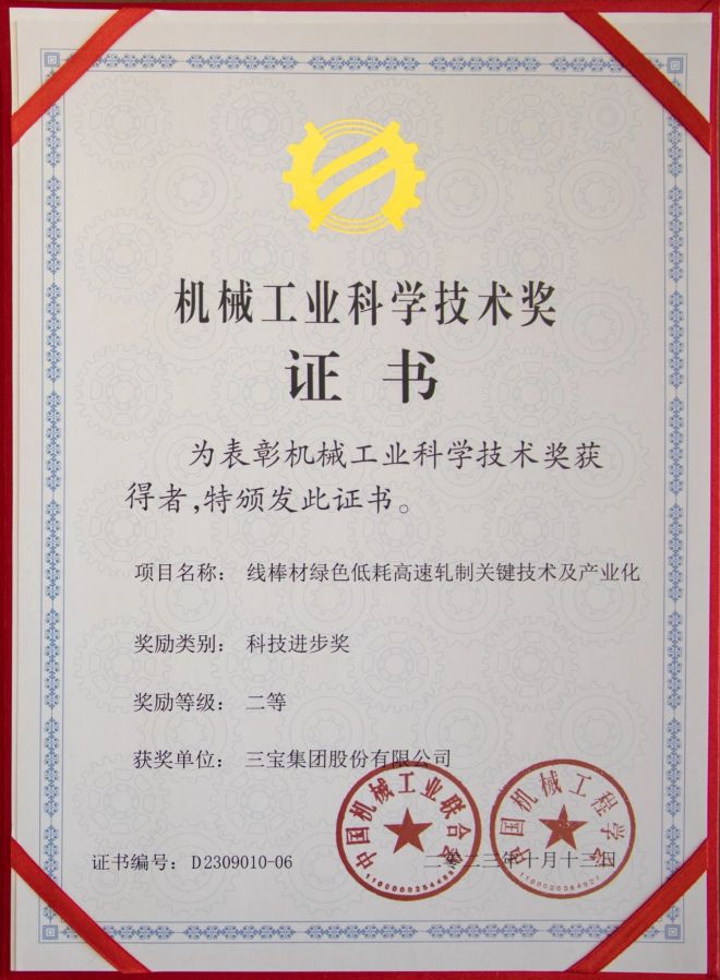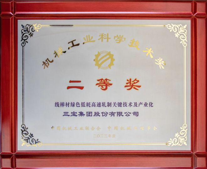 近日,中國(guó)機(jī)械工業(yè)聯(lián)合會(huì)和中國(guó)機(jī)械工程學(xué)會(huì)聯(lián)合公布“機(jī)械工業(yè)科學(xué)技術(shù)獎(jiǎng)”獲獎(jiǎng)名單,其中,由王光文董事長(zhǎng)帶領(lǐng)三寶團(tuán)隊(duì)完成的“線棒材綠色低耗高速軋制關(guān)鍵技術(shù)及產(chǎn)業(yè)化”項(xiàng)目榮獲科技進(jìn)步獎(jiǎng)二等獎(jiǎng),這是對(duì)三寶集團(tuán)在機(jī)械工業(yè)領(lǐng)域所取得科技成果的極高贊譽(yù)。