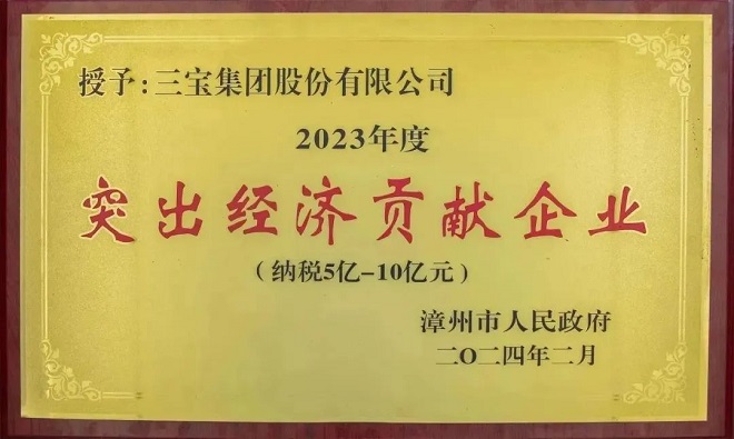 2023年,在市委、市政府的堅強領導下,全市上下深入開展“產業發展項目建設提升年”活動和“七比一看”競賽取得豐碩成果。三寶集團及旗下5家公司被漳州市人民政府授予“突出經濟貢獻企業”榮譽稱號。