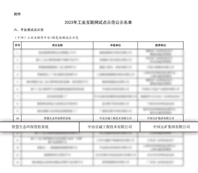 3月21日,工業和信息化部正式公布了2023年工業互聯網試點示范項目名單,中冶京誠“智慧生態環保管控系統”成功入選工信部2023年工業互聯網試點示范項目,該項目為中國五礦本次推薦申報的唯一入選項目。